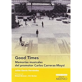 Reseña del editor El vestíbulo de un hotel. El reencuentro de dos viejos amigos. Un abrazo y dos besos separados por un cariñoso e irónico «tranquilo, no hace falta que te levantes». Todo normal. Alegría, risas y un desayuno por delante en el que el té, el café y las tostadas estorbarán seguramente a las palabras. Tan cotidiano como intrascendente, Carlos, uno de los amigos, recela del interés que puede tener explicarme la escena. Tal vez debiera darle la razón, de no ser porque su amigo, el bromista, el del irónico «no hace falta que te levantes» es Sting y porque él, Carlos, va en silla de ruedas desde que nació. Así da comienzo Good Times, un libro de memorias, concebido y redactado mano a mano con Julián García Hernández, que recorre la trayectoria profesional de Carlos Carreras-Moysi, uno de los promotores de conciertos más importantes surgidos en España durante la década de los ochenta del pasado siglo. Desde su responsabilidad en la promotora GIGS como director de contratación, Carlos consiguió que muchas giras de grandes bandas internacionales pasaran por España en una época en la que el país apenas empezaba a familiarizarse con los grandes conciertos de rock en estadios. Queda aquí relatada su experiencia junto a músicos como Mike Oldfield, Peter Gabriel, Elton John, Eric Burdon o Robert Palmer, y grupos como Dire Straits, The Police, Roxy Music, The Smiths, AC/DC o Iron Maiden, entre muchos otros. Biografía del autor Julián García Hernández (Barcelona, 1972) es titulado por la Escuela Técnica Superior de Arquitectura de Barcelona, pintor y posgraduado en Museografía y Espacio Expositivo. Trabajando para la promotora GIGS, fue responsable de que pasaran por nuestro país grandes giras internacionales con los mejores solistas y bandas de aquel momento. Por su prestigio profesional, fue designado director musical de las ceremonias de inauguración y clausura de los Juegos Olímpicos y Paralímpicos de Barcelona en 1992 y, en el plano periodístico, trabajó también como redactor jefe para de la revista Tierra, además de coordinar samplers mensuales para las cabeceras Rock Sound, Trax o Heavy Metal.Tapa blanda=192 páginas. Editor=Milenio Publicaciones S.L.; Edición: 1 (16 de febrero de 2017). Colección=Ensayo / Música. Idioma=Español. ISBN-10=849743708X. ISBN-13=978-8497437080. Valoración media de los clientes=Sé el primero en opinar sobre este producto. Clasificación en los más vendidos de AmazonRock=nº90.077 en Libros (Ver el Top 100 en Libros) .zg_hrsr { margin: 0; padding: 0; list-style-type: none; } .zg_hrsr_item { margin: 0 0 0 10px; } .zg_hrsr_rank { display: inline-block; width: 80px; text-align: right; } n.° 90 en Libros > Arte, cine y fotografía > Música > Géneros musicales >.